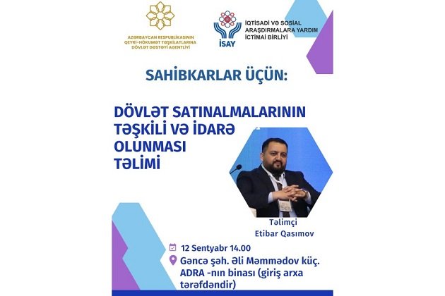 İqtisadi və Sosial Araşdırmalara Yardım İctimai Birliyi tərəfindən “Mikro, kiçik və orta sahibkarlıq subyektlərinin dövlət satınalmalaırnda rəqabətliyinin artırılması” layihəsi çərçivəsində